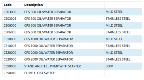 The CPS range of separators are designed for efficient oil removal in low flow between 300L / hour – 2000L / hour using a patented polypropylene coalesce