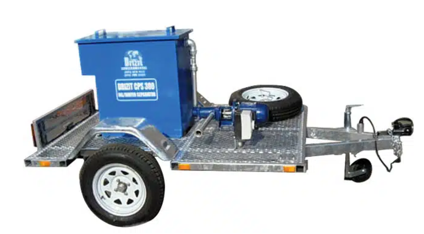 Where larger distances between separators and pits must be covered, the trailer mounted CPS is the best choice. This unit is supplied with choice of air driven or electric driven positive displacement pump, compact floating weir skimmer and all suction and delivery hoses